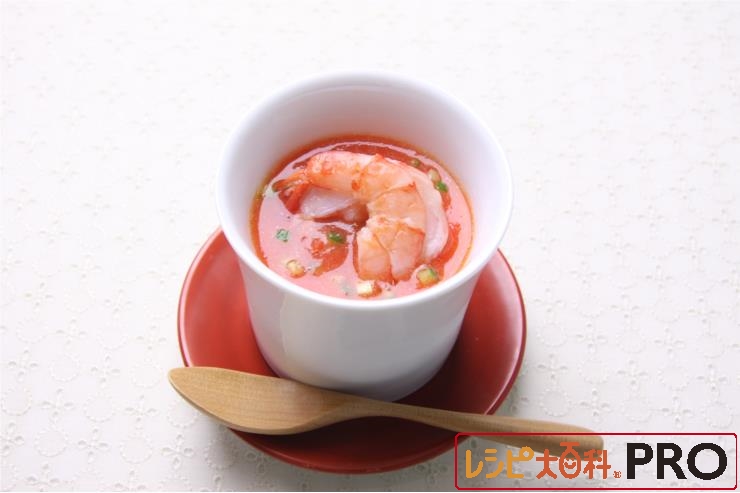 ガスパチョ風ソースを添えたのどごし良い茶碗蒸し