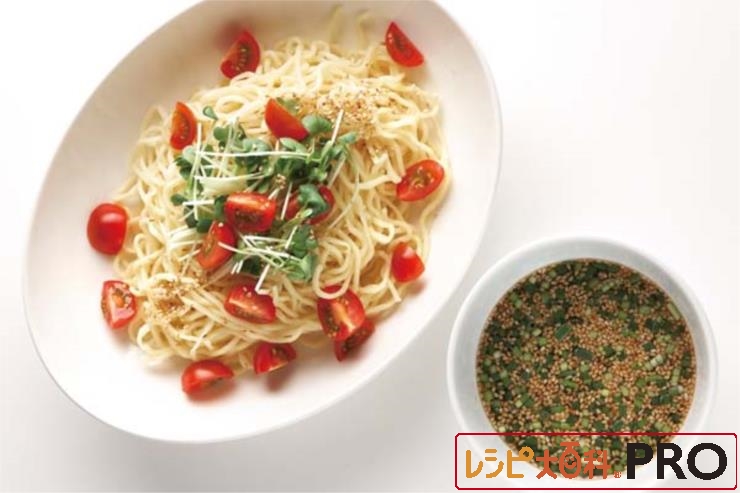 器に(1)を盛り、(2)をのせ、小ねぎを散らす。