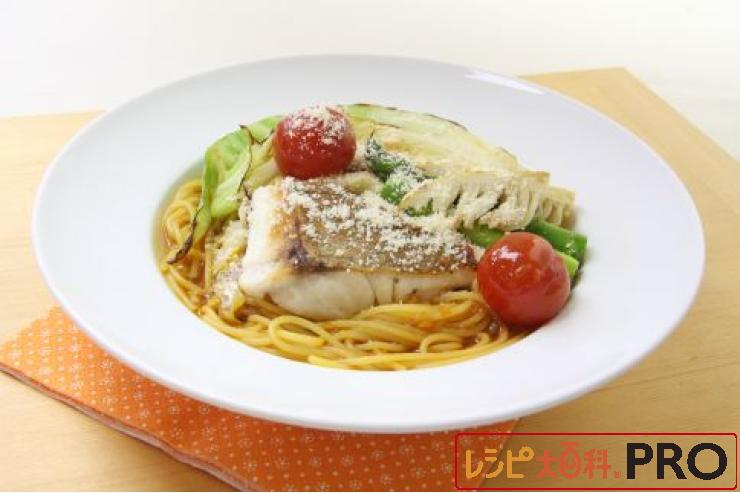 鯛と春野菜のグリルのトマトコンソメパスタ