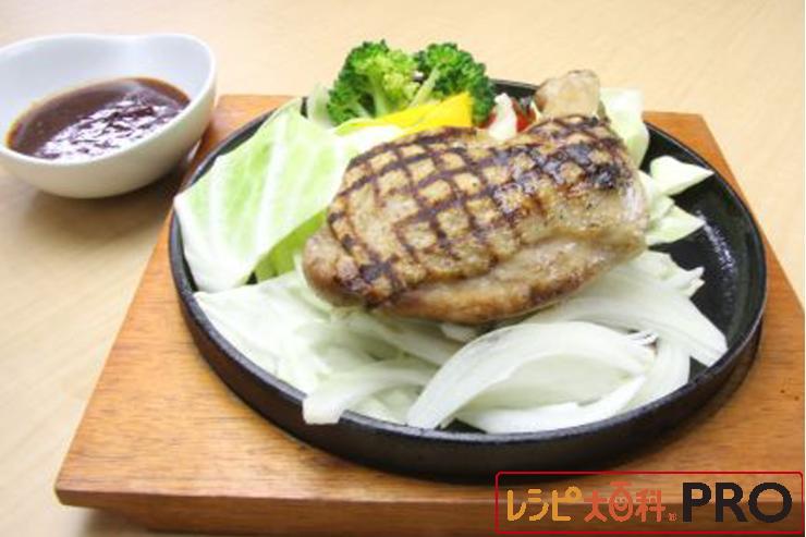 鶏骨付きもも肉に、Aで下味をつけ、グリルパンで焼き色をつけ、180℃のオーブンで15分焼く。