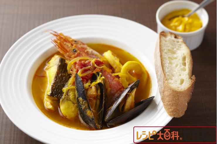 器に(3)を盛りつけ、(4)、バゲットを添える。