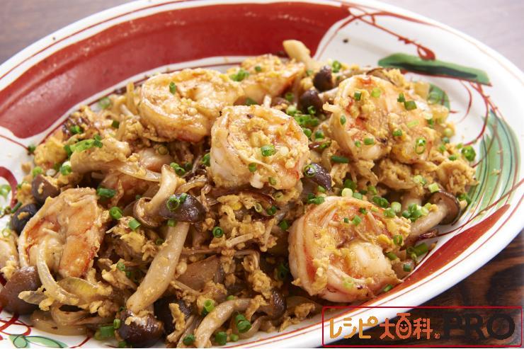 (1)にAを加えてしんなりするまで炒め、「Cook Do®」ガリバタ鶏用を加えて炒め合わせ、溶き卵を回し入れる。