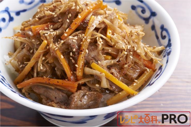 丼にご飯をよそい、(2)を適量のせ、Bをふる。