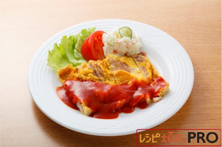 器に(2)を切って盛りつけ、(3)のソースをかけ、