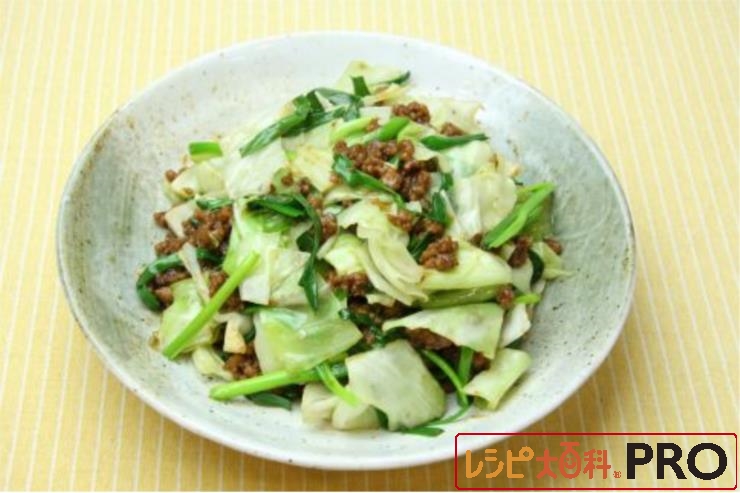 フライパンにサラダ油を熱し、キャベツを炒めて取り出し、豚ひき肉を炒める。