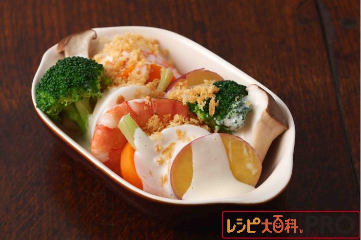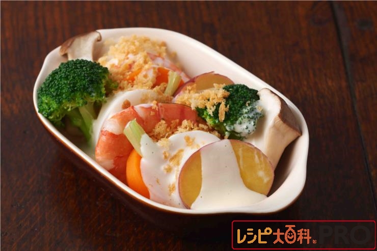 Aはそれぞれ蒸す、またはゆでる。えびは尾を残して殻をむく。