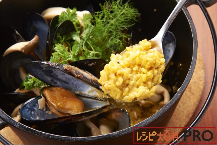 ムール貝のうま味がたっぷり溶け出したスープで仕立てたリゾット。