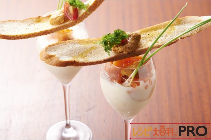 サーモンと生ウニのビィシソワーズ ゴルゴンゾーラ風味