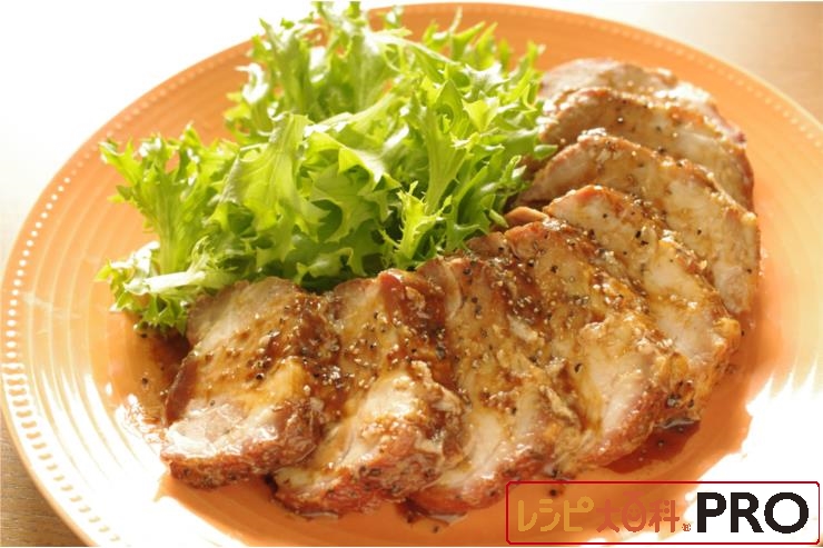器にカットした(4)を盛り、肉汁を温めてかけ、フリルレタスを添える。
