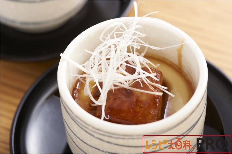 (1)の茶碗蒸しに(2)のあんをかけ、白髪ねぎを飾る。
