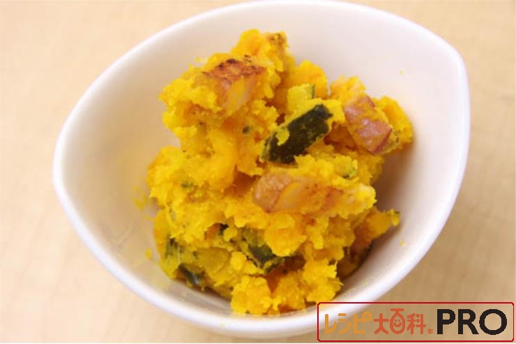 (加熱時間は、かぼちゃ;約15分、ベーコン;約3分)