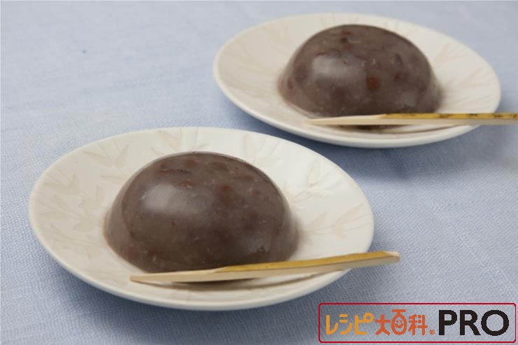別の鍋に(5)の粒あん、Aを入れて火にかけ、寒天が溶けたら、火を止める。型に入れ、冷蔵庫で冷やし固める。