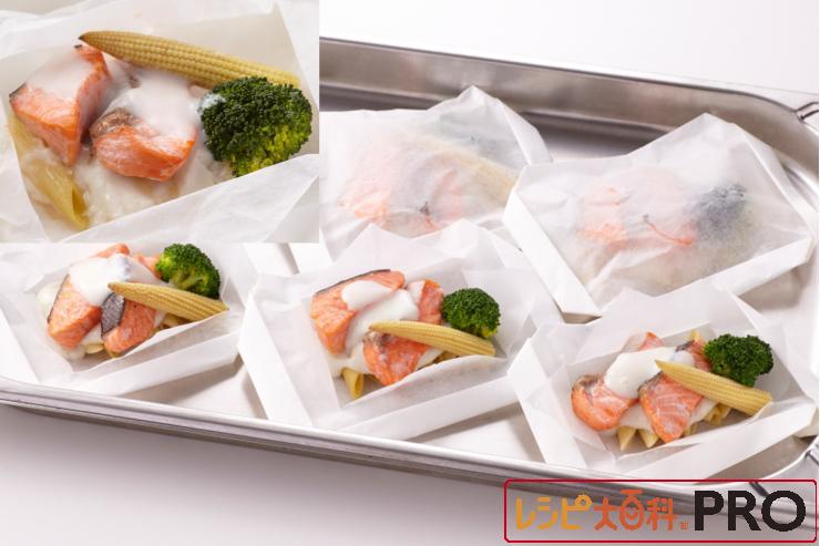 サーモンとペンネのホワイトソース包み<スチコンレシピ>