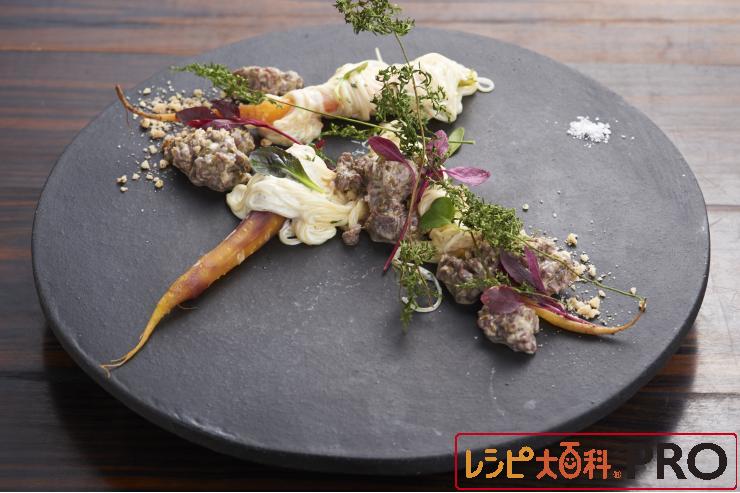 冷製レムラードで和えたカッペリーニ 馬肉と有機人参