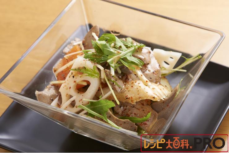 豚レバーはスライスしてから何度も流水にさらし、白くなるまでもみ洗いをして臭みを抜く。