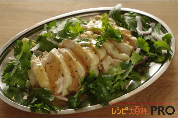 シンガポール風蒸し鶏をたっぷりの野菜でサラダ風に