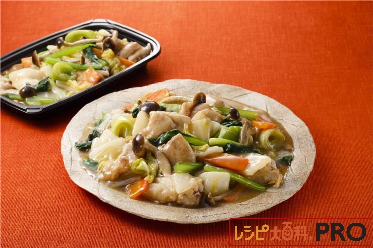 Bを注いでひと煮立ちさせ、水溶き片栗粉でとろみをつける。