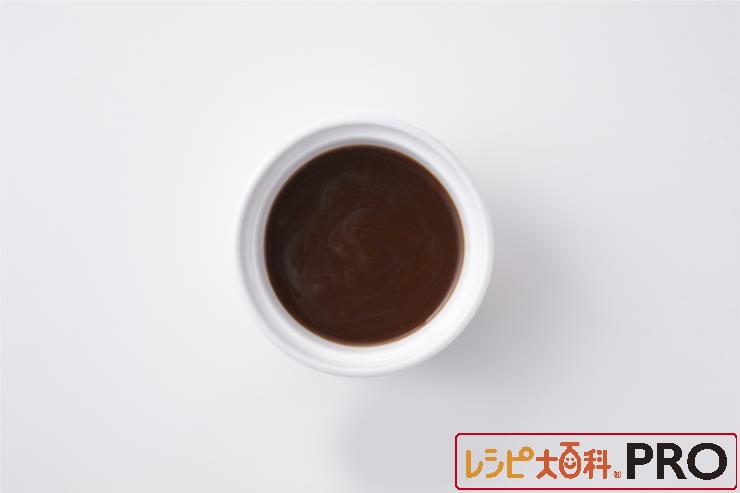 ボウルに(1)のデミグラスソース100g、インスタントコーヒーを入れて混ぜる。