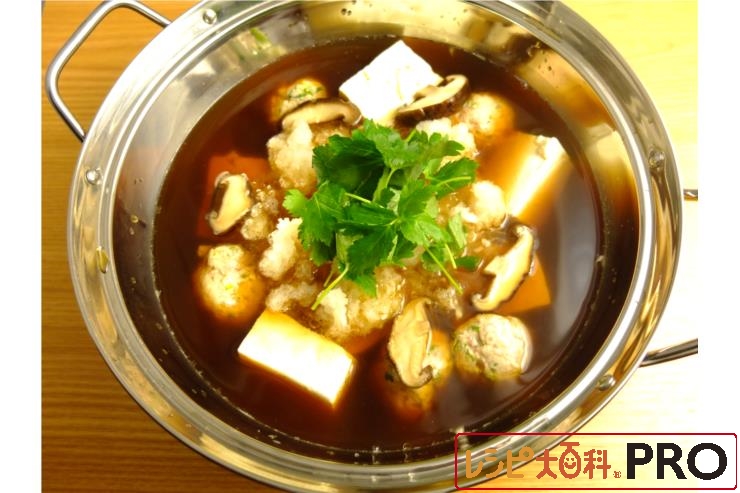 鍋にCを入れて火にかけ、煮立ったら(1)のつくね、Bを加えて煮る。