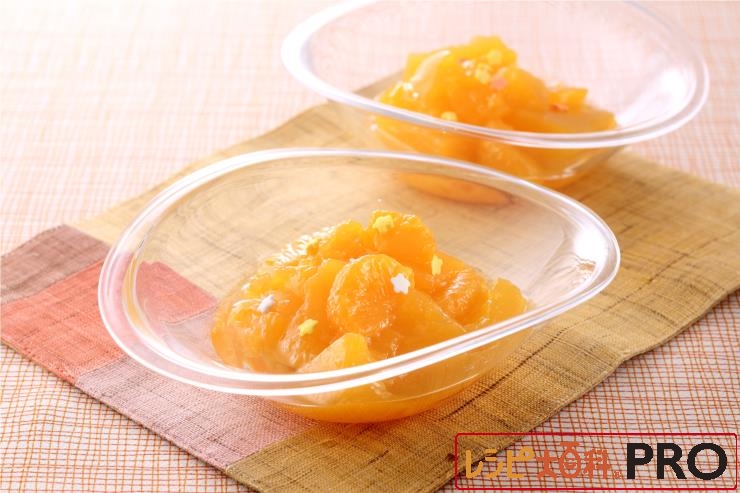 とろみがつく程度になったらみかんを散らす。冷蔵庫で冷やし固める。