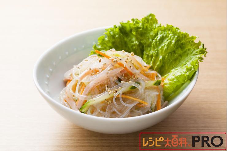 定番の春雨サラダをドレッシングだけで和えた新しい美味しさです。小鉢のバラエティーアップに活躍します。