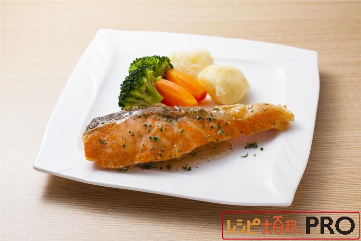 ランチメニューにも最適。「ごま香る うま塩ドレッシング」が、サーモンの味を引き立てます。