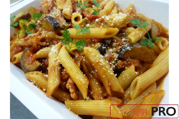 ナスとベーコンのアマトリチャーナ風〈ホテルビュッフェ向け〉