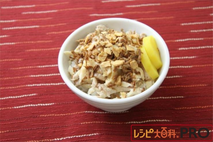 器にご飯をよそい、Aをのせ、(1)をかける。