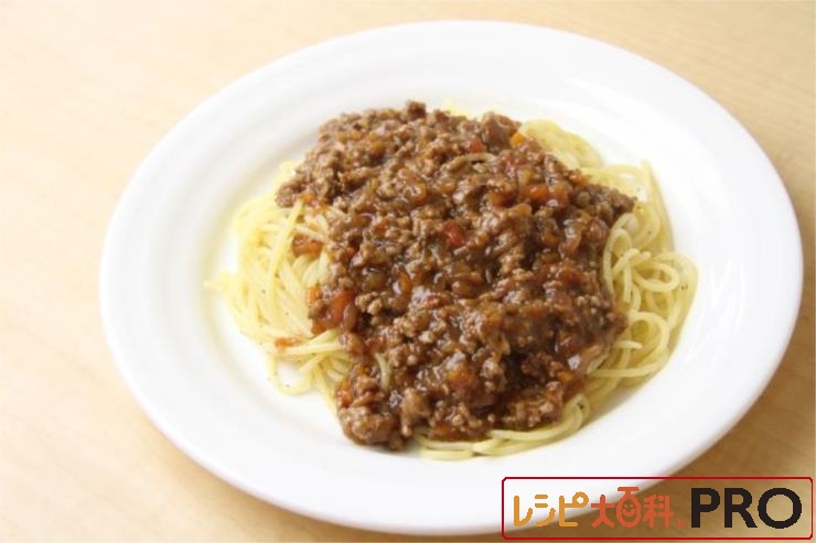 デミグラスソースのコクと黒胡椒が効いたミートソースのパスタです。