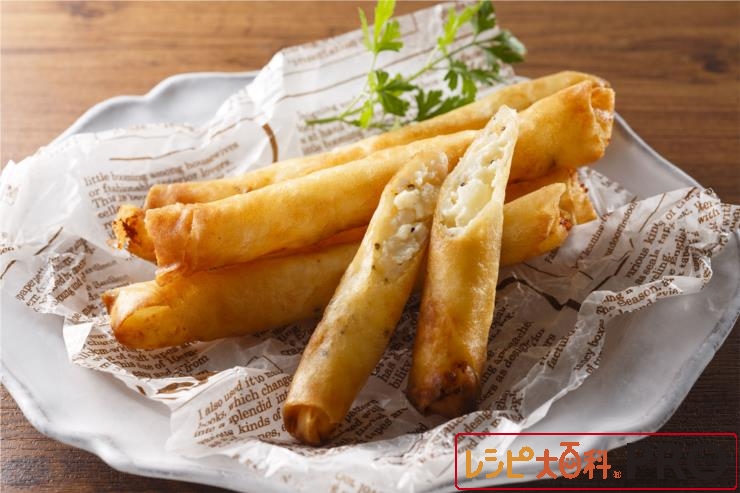 春巻きの皮にポテトサラダを包んで揚げるだけ!中からチーズがとろ~り。お酒にぴったりなメニューです。