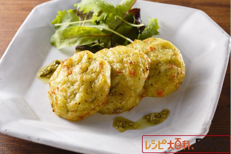 「士幌ポテト」にバジルペーストを混ぜ込んで焼くだけの簡単オシャレメニュー。ワインが進みます。