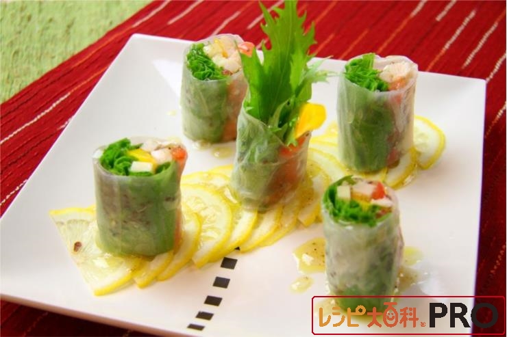 ごま香る うま塩ドレッシングで味つけをした生春巻き。話題栄養素たっぷりのチアシード包んだサラダ