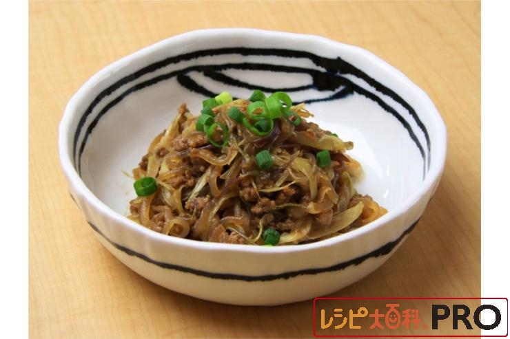 フライパンにサラダ油を入れ、ひき肉を炒める。