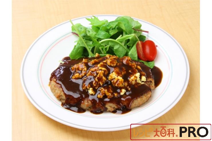 冷凍ハンバーグでもふわふわ卵とデミソースでジューシーに!