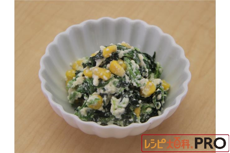 ほうれん草とコーンの洋風白和え<減塩レシピ>