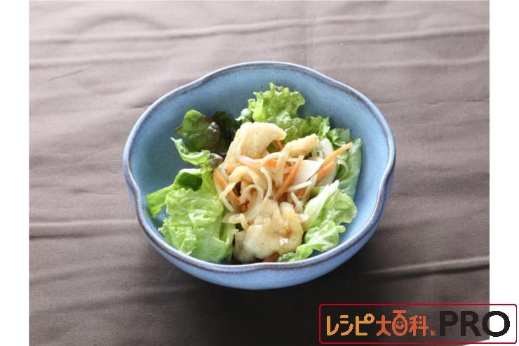 ドレッシングで、鶏天がさらにおいしい小鉢サラダです。