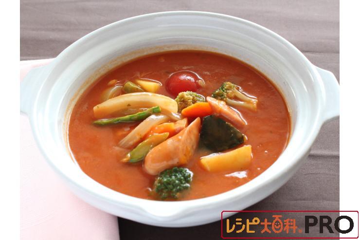 野菜たっぷりのトマト鍋、「ほんだし® 」が酸味をマイルドにしています。