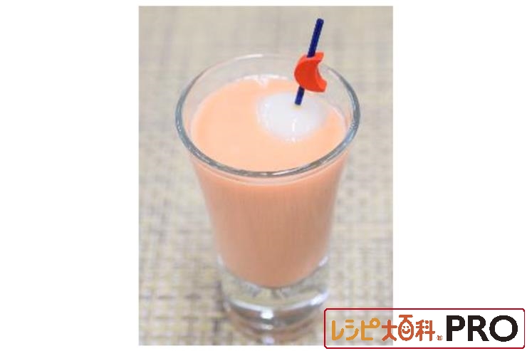 (1)の粗熱を取り、ミキサーにかけ、冷蔵庫で冷やす。