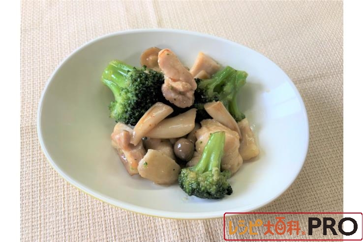 鶏肉に火が通ったらブロッコリーを加えてひと煮立ちさせる。