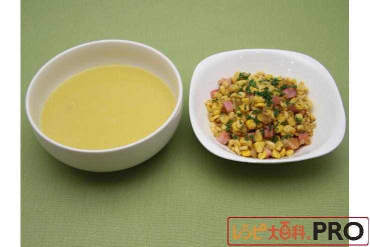 ベーコンとバター醤油で炒めたコーンのポタージュ