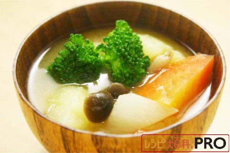 <デミベース>にたくさんの野菜を加えた洋風スープです。