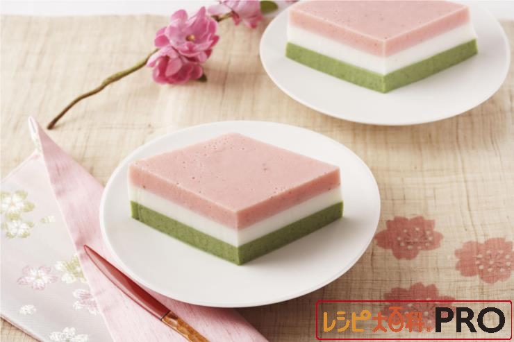 流し缶から取り出し、ひし形になるように切り、器に盛る。