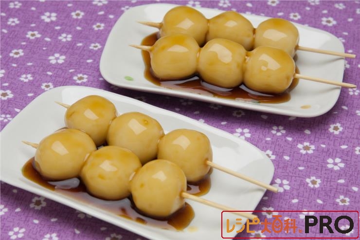 鍋にたっぷりの湯を沸かし、(3)を入れ、浮き上がってきたら、1~2分ゆでて冷水にとる。水気をきって3個ずつ串に刺し、器に盛る。