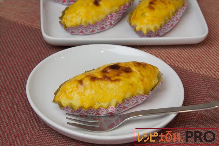 耐熱ボウルにさつまいもを入れて、ラップをかけ、電子レンジ(600W)で10分加熱し、熱いうちにフォークなどでつぶす。