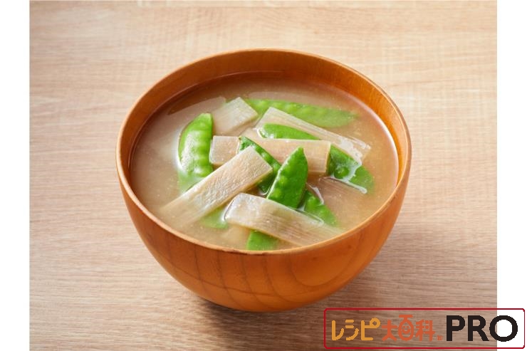 春の香り漂う味噌汁。うどは仕上げに加えて香りと食感を楽しめる一品に。