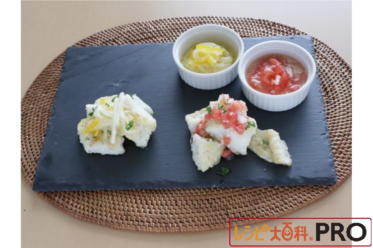 白身魚は0.5%の塩水(分量外)に漬け、解凍する。水気を拭き取り、ひと口大に切っておく。