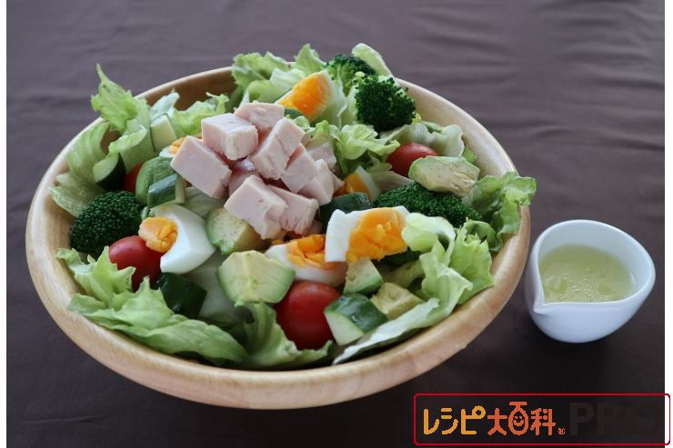 角切りの野菜と素材をドレッシングで味わうサラダです。
