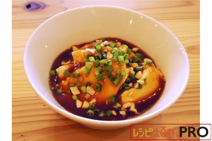 (1)に混ぜ合わせたBをかけ、Aを散らす。