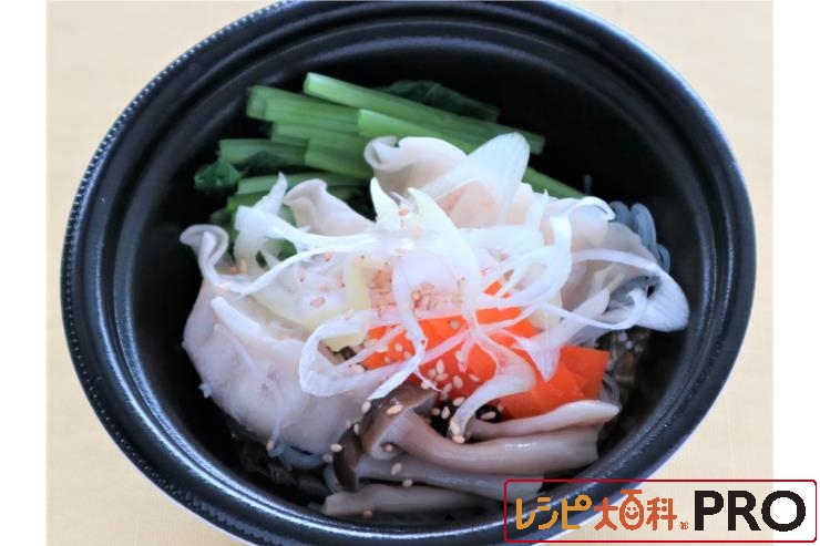 Aは熱湯で約1分下ゆでし、水きり後に冷却する。ねぎはカット後、水にさらして水きりする。水戻しした春雨は、約1分熱湯で下ゆでし、冷却する。