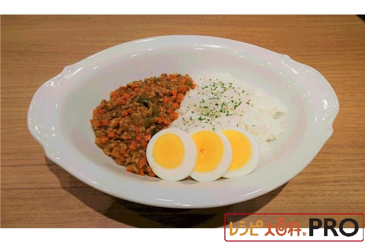 器にご飯を盛り、(1)をかけ、ゆで卵を添える。